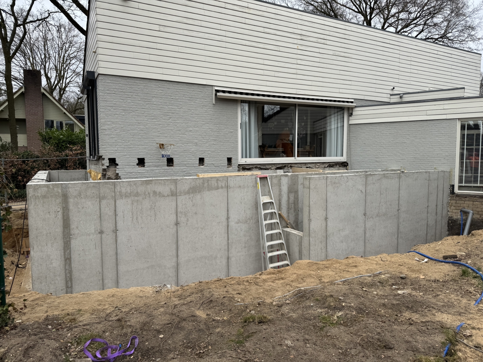Uitbreiding bestaande half verdiepte kelder met zwembad te Molenhoek.